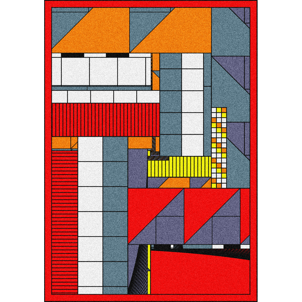 The first level is the golden composition with rectangles and the other levels are defragmented and increase in complexity, allowing more variety in the collection.